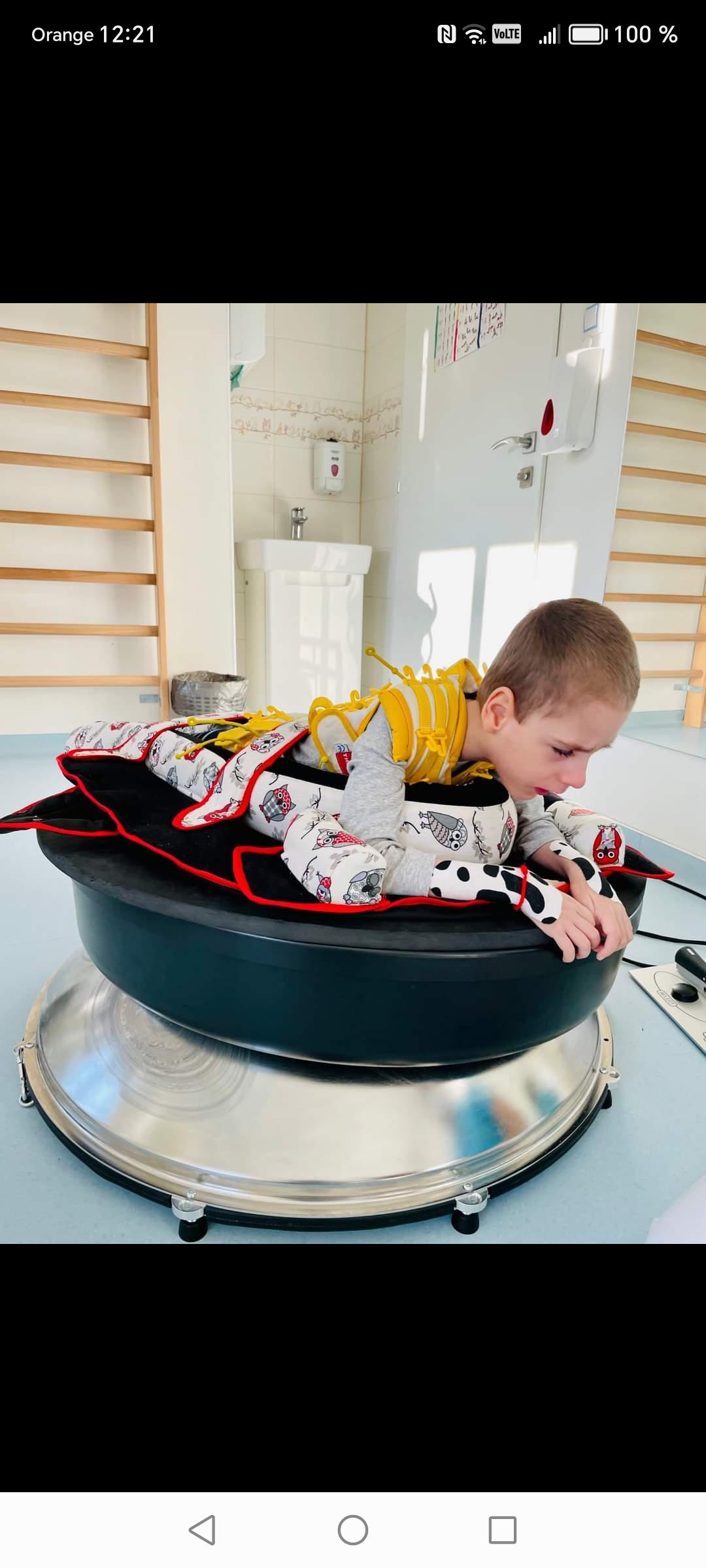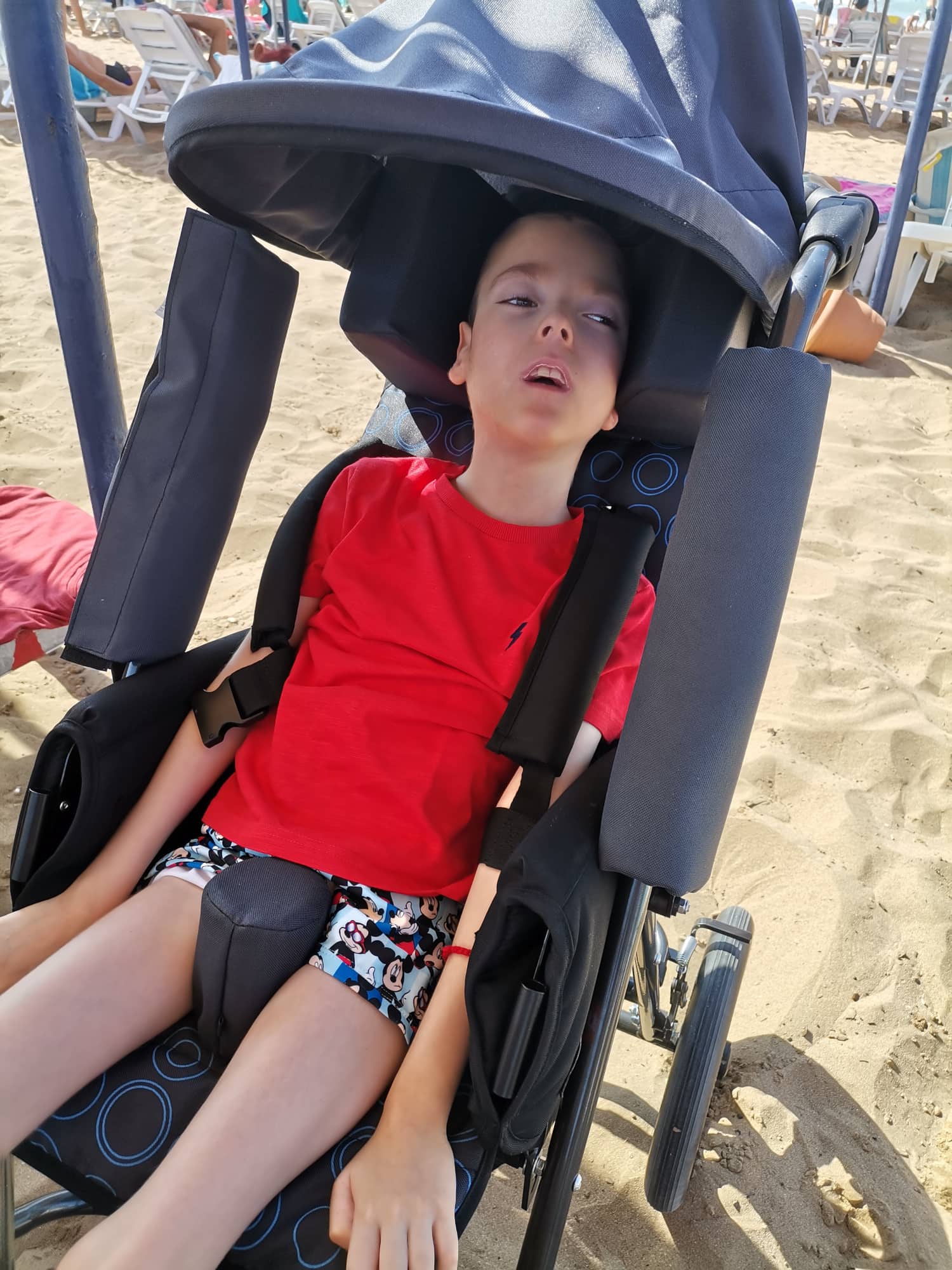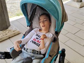 Je hypotonik, ležiaci, nedokáže sám sedieť, ani udržať hlavičku, má aj respiračné problémy. Dlhodobo navštevujeme centrum Liberta v Kosiciach. Potrebuje však pravidelne a intenzívne cvičiť.