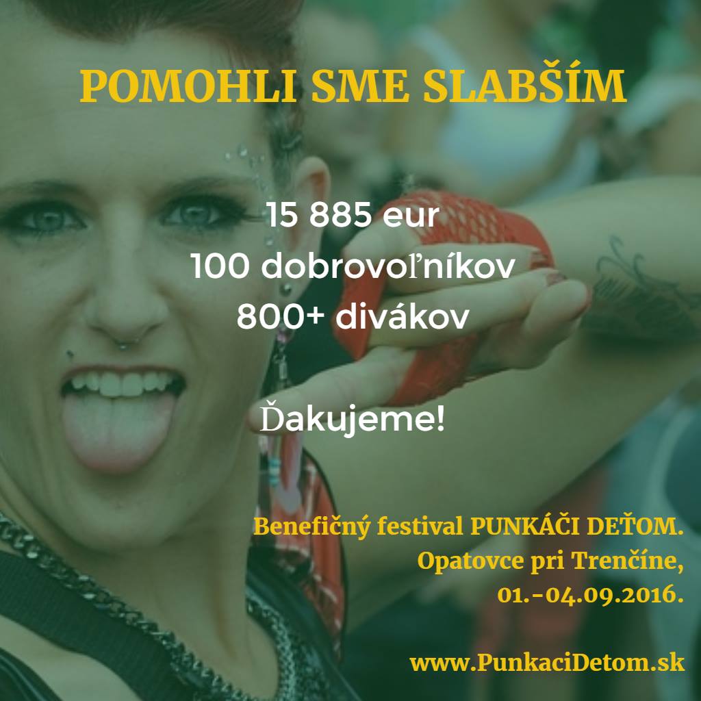 Občianske združenie ktoré je, určené na organizovanie kultúrnych a športových podujatí s výťažkom pre choré deti. Hlavnou aktivitou OZ je od roku 2008 organizovanie benefičného festivalu PUNKÁČI DEŤOM