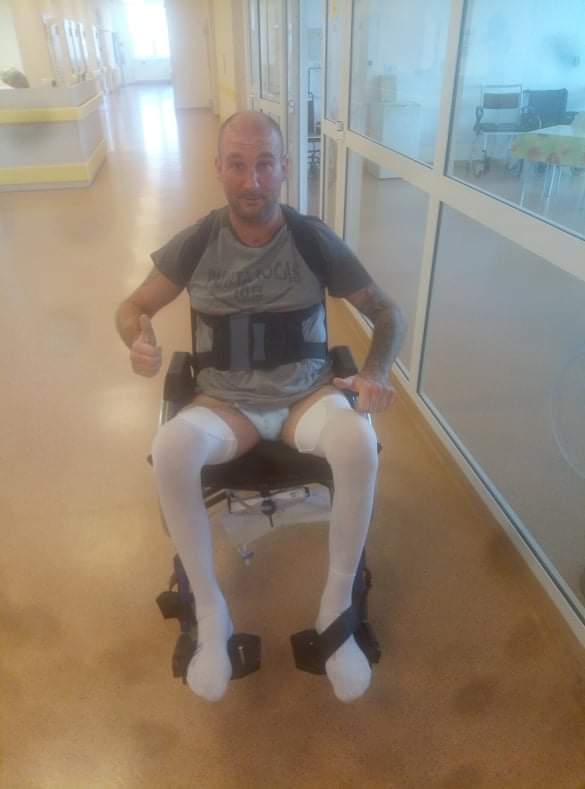 Volám sa Ľuboš Husťak. Mám 40 rokov a pochádzam z Košíc.V osudný ďeň 4 júla, roku 2020 som nešťastné spadol z 11 metrovej výšky. Svet som začal vnímať až na na áre v Košickej nemocnici L.Pasteura. Zlomených bolo 9 rebier, mla som voda v pľúcach, takže nasledovala tracheotómia. a najhoršie zo všetkého zlomené stavce 4, 5 a 11. Dátumy si už presne nepamätám ale na traumatológii som bol od augusta do 4-tého septembra. Mal som šťastie a hned som dostal termín na rehabilitáciu do NRC v Kováčovej. Veľmi som sa potešil, lebo na toto zariadenie som počul len tie najlepšie hodnotenia. Pomaly som začal s cvičeniami, no začala ma bolieť pravá ruka a niektoré procedúry som nemohol absolvovať. Na RTG mi zistili zlomeninu ešte od júla. Tak som musel ísť koncom septembra naspäť do Košíc na operáciu. Odležal som mesiac s rukou v sádre. Nasledovala 2 týždňová rehabilitácia s rukou v novej nemocnici L.Pasteura a potom znova späť na 2 týždne na Traumatológiu do starej nemocnice. Prehliadnutá zlomenina ma stála niekoľko týždňov rehabilitácií a spomalila môj progres. Čo už asi to tak malo byť...