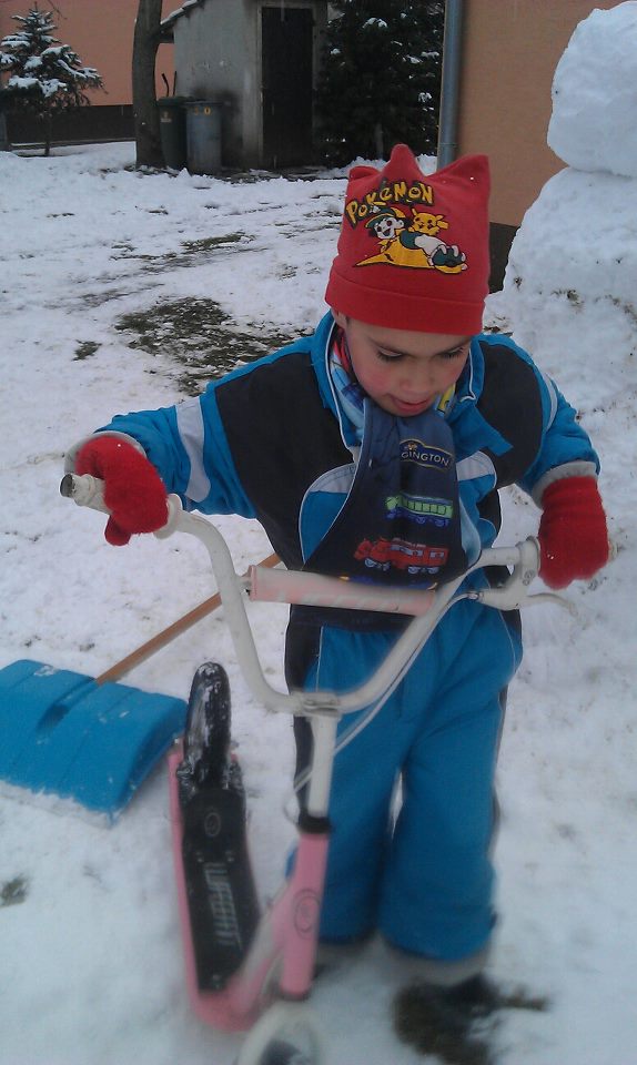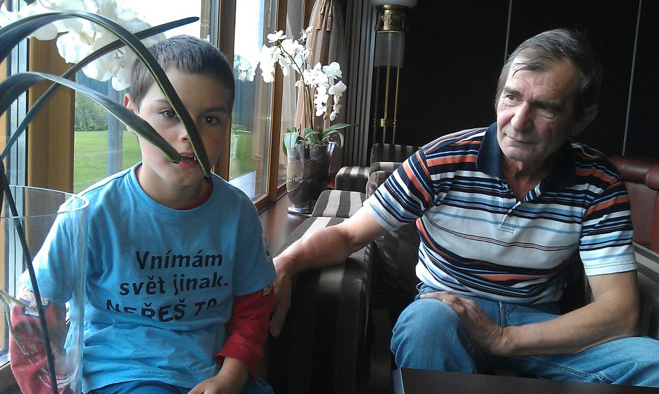 Keď sa tak začal s revom prudko hojdať doma na zemi, ľahla som si k nemu, aby som vyskúšala, čo asi pri tom cíti. Zjemnil pohyby, tak som spomalila tiež. Zasa spomalil, ja tiež. Žiadne priame pohľady. Takto sme sa potom hojdali spolu pár minút v príjemnom tempe. O týždeň zasa začal na zemi legovou kockou nahlas škriabať našu novú plávajúcu podlahu. Sadla som si k nemu a začala som si podlahu ničiť s ním. Vtedy sa mi prvý raz pozrel do očí. Vedela som, že mám vyhrané. Od vtedy ak niečo chcel, chytil ma za ruku a podal si to mojou rukou. Či už hračku, alebo jedlo do pusy. Neskôr som sa dozvedela z odbornej literatúry, ktorú som začala študovať, že to, čo som s ním robila, je súčasť metódy son-Rice. A takto som intuitívne došla na rôzne metódy, ako pracovať s autistom. Do dedinskej škôlky mi ho nechceli zobrať, že musí najprv absolvovať psychologické vyšetrenie, odtiaľ ma poslali zasa na ušné, lebo psychologička si myslela, že nepočuje - na jej požiadavky vôbec nereagoval. Vyšetrenie v narkóze ukázalo, že síce má horšiu počuteľnosť v pásme hlbších tónov, zato počuje z ultrazvukov viac, ako bežní ľudia. To nás inšpirovalo na delfinoterapiu v jeho šiestom roku života. Delfíny také zvuky vraj vydávajú a pomáha to pri rôznych stavoch. Áno, môžem potvrdiť značné, značné zlepšenie. Lacko už rozpráva. Pre mnohých nezrozumiteľne, ale rozpráva. V škole už väčšinou nepotrebuje obrázkové kartičky, rozumie ľudskej reči. Vďaka delfínom a jednotnej tvrdej práci doma i v škole sme ho vytiahli na stredný stupeň mentálnej retardácie. Boli sme na delfinoterapii v januári 2012 na Ukrajine, lebo tak to vychádzalo najlacnejšie. Nešli sme sa predsa kúpať, ale liečiť. Avšak kmeňový detský domov, ktorého bol v tom čase chovancom mu prispel 200 eur, nadácia Rozum a cit 300. Od drobných darcov sme vyzbierali 40 eur a moji 85 roční rodičia cudziemu dieťaťu dali 500. Zbytok sme dali my z našetrených, ale časť sme si museli požičať v Provident. A to viete, aké majú úroky. Každý deň mi chlapec povedal nové slovo, začal sa rozvíjať priam skokmi, žiaden plač a zlostné kopanie, keď sa mu v autobuse niekto prihovoril... Terapeut doporučoval liečbu zopakovať po 6 mesiacoch a potom tretí raz po 2 rokoch. Žiaľ, z finančných dôvodov sa nám to nepodarilo. Lacko začína v rozvoji zasa stagnovať :-(. Lacko je iný ako ostatné deti. V lete ťahá sane, v zime jazdí na kolobežke. Ľúbi zvieratká. Ale ľúbi ich tak silno, že musíme vyberať také, aby jeho stisk vydržali. Bývame na dedine, čo je pre neho ideálne. Denne (už od augusta minulého roka) ho môžete vidieť so stonožkou na kolieskach. Vodí Rafaelu do školy v Bratislave a mne sa tak popri ňom ľahšie kráča. Keďže som odišla minulý rok do dôchodku, musela by som dieťa, o ktoré nikto od narodenia nejavil záujem (bol pre niekoho nechceným vianočným darčekom), vrátiť do ústavu. Súd mu, na šťastie, priklepol u nás doživotie :-). Pri jeho diagnóze (F 84 - detský autizmus) by sa už určite uzavrel do seba celkom a všetka naša práca s ním by prišla navnivoč. Preto si myslíme, že ďalšia terapia s delfínmi je nevyhnutná. Pomôžete? Ď A K U J E M E ! Ak chcete o našej rodine vedieť viac, môžete si pozrieť v archíve STV 2 reláciu Família z 8.11.2013, ktorú budú opakovať 4. apríla 2014. Toto dieťa je už totiž v našej rodine ôsme a iba jedno sa nám narodilo, to tretie v poradí. Na žiadne z nich som od ľudí nič nežiadala, hoci problémov aj finančných bolo dosť. Tie adoptované boli predsa naše a výchovou tých ďalších som splácala dlh spoločnosti, ktorá mi ich zverila. A tento najmenší? Treba ho ľúbiť takého, aký je. Láska bez podmienok robí zázraky :-) No a delfíny tiež :-D
