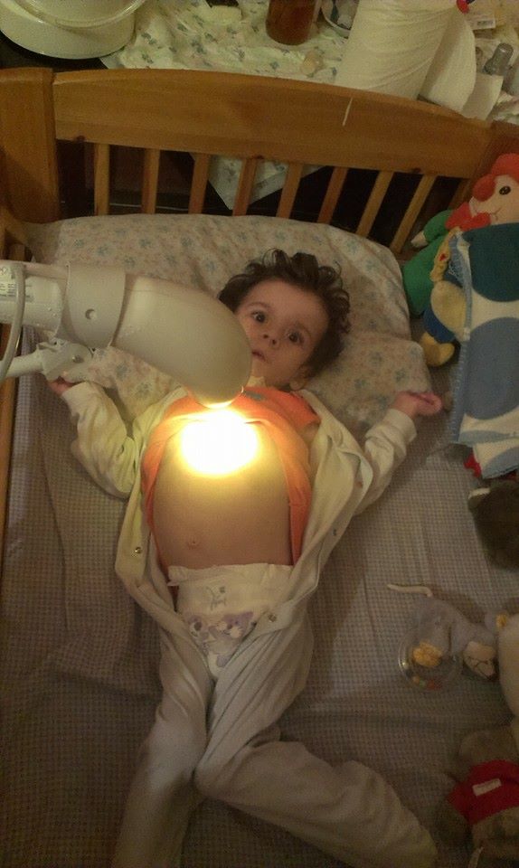 17.07.2010 sa mi narodil vnucik Vojto,maly anjelik s velkymi hnedymi ockami a dlhymi ciernymi vlaskami.Bolo to velmi krasne miminko a po prepusteni z nemocnice som sa ho ujala,pretoze jeho maminka nie je sposobila starat sa o dietatko.Vnucik, je mojim slnieckom,ktore sa na mna usmieva kazdy den , robi mi radost a dava mi silu do zivota. k ed mal 3 mesiace,som si vsimla ,ze nieco nie je v poriadku,preto som snim navstivila detsku lekarku,ale ona ma uistovala ze vsetko je v poriadku a dietatko sa vyvija v norme.Ale nebolo to v poriadku,vnucik cele dni plakal ako keby ho nieco bolelo a ked aj nieco spapal tak to hned aj vyzvracal.Nedalo mi to a znova sme navstivili pani lekarku a na moje naliehanie nas odporucila do Banskej Bysrice na neurologicke oddelenie.Po 3 tyzdnovom pobyte nas prepustili s diagnozou P94.1-VRODENA HYPERTONIA,ale tato diagnoza bola upravena na DMO.Konecna diagnoza vnucika je: DMO-SPASTICKA KVADRUPAREZA S HYPOTONIOU A DYSTONIAMI TRUPU A KONCATIN,TAZKA PMRZacali sme chodit na rehabilitacie do Dunajskej Luznej,kde maly absolvoval cvicenie Vojtovou metodou,v rehabilitaciach sme pokracovali .chodili sme na pobyty 4x do roka,kde vnucik absolvoval terapie: LTV- cvicenie na fitlopte - celotelovy vyrivy kupel - klasicku masaz - magnetoterapiu - BioptronDna 23.2.2014 sme sa dostali do nemocnice v Rimavskej Sobote ,s podozrenim na silny zapal pluc a vysoke horucky.24.2.2014 rano nas prevazali do DFNsP Banskej Bystrice na odd. ARO pre zlyhanie pluc.Po 2 tyzdnovej liecbe pre zhorsenie dychania mu bola vykonana -TRACHEOSTOMIA.17.3.2014 nas prelozili do nemocnice v Rimavskej Sobote ,tam sme pokracovali v liecbe do tej doby,kym sme obdrzali pristroj na odsavanie hlienu.23.3.2014 sme dorazili domov,zdravotny stav vnucika sa pomaly stabilizuje.Pretoze naklady na liecbu a zdravotne pomocky vratane liekov a roznych roztokov,ktore musim hradit sama pretoze zdravotna poistovna to nehradi,prosim dobrych ludi o pomoc.Chcela by som zabezpecit vnucikovi zabezpecit plnohodnotny zivot aky mu jeho zdravotna stav dovoli ,pretoze neviem, ako dlho budem este zit .lebo aj moj zdravotny stav sa rapidne zhorsuje.