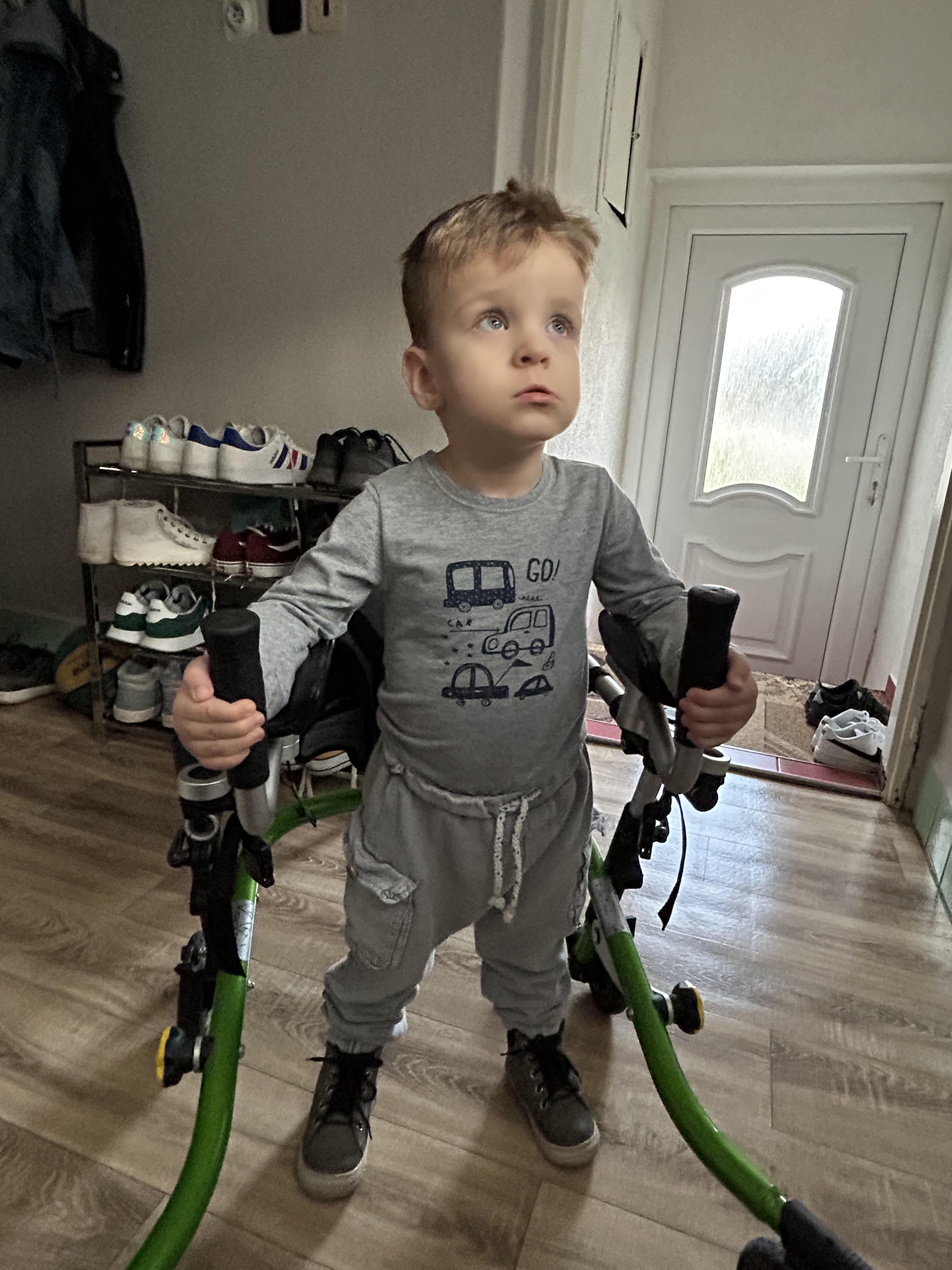 Miško momentálne stojí a urobí pár krokov s pomocou. Nerozpráva, ale rozumie všetkému.