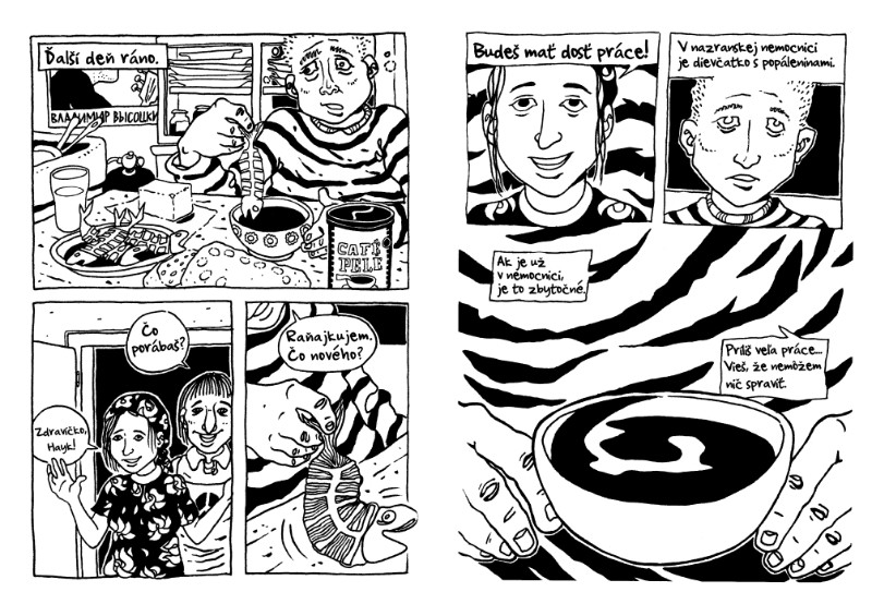 Toľko príbeh z komiksu. Ale aj jeho preklad a vydanie majú svoj príbeh. Baštou komiksu sú frankofónne krajiny, komiks je v nich rovnocennou súčasťou ostatných literárnych žánrov. A keďže francúzština ma sprevádza od strednej školy, už dlhší čas holdujem dobrému komiksu. Do rúk sa mi dostali aj „Zápisky z blízkeho zahraničia“, ich téma sa mi zazdala príťažlivá aj pre slovenského čitateľa, a tak som sa pustil do prekladu. Vízia bola, že raz by som chcel tento komiks vydať. Mám kamaráta grafika, preto sa mi postupne ako vhodná začala javiť aj forma vlastného vydania, resp. vydavateľstva. Samozrejme, naraziac na realitu, musel som svojej predstave ubrať trochu pátosu. Aj vzhľadom na to, že komiks nie je na Slovensku rozšírený, a neviem, aké by boli reakcie vydavateľov na moju ponuku, aj vzhľadom na to, že každý okolo mňa prispel k tomuto obrazu svojou hrôzostrašnou skúsenosťou, aké obrovské ťažkosti momentálne na Slovensku s vydávaním kníh prevládajú. Stále som sa však v hlave zapodieval myšlienkou vydať tento komiks, a tak sa mi postupne vykryštalizovala predstava, čo také vydanie knižného diela vyžaduje, a momentálne z tohto konkrétneho kroku nemám až také obavy.