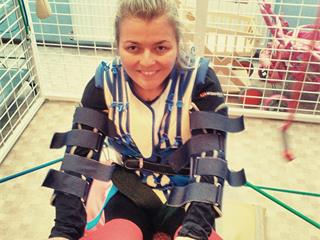 Na drúhom pobyte okrem uvoľnenia svalov má fyzioterapeutky začali stavať na nohy, čo môžete vidieť aj na fotke. Už dlhší čas som uvažovala nad spôsob ako sa naučiť presunúť z vozíka na posteli. Po príchode z rehabilitácie sa mi to podarilo. :)