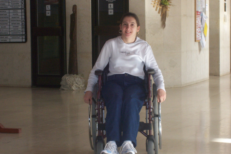 telesne postihnutá-ťažko sa mi pohybuje,pohybujem sa s pomocou vozíka.Od