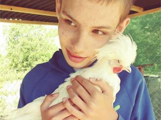 Danielko bude mat v maji 15 rockov.Napriek tomu je to vecne dieta.Par diagnoz nam komplikuje trosku zivot,no my sme sa nikdy nevzdali.Danielko ma kortiko subkortikalnu atrofiu mozgu detsku mozgovu obrnu,centralny hy potonicky syndrom, pervazivnu vyvojovu poruchu autizmus,stredne tazku mentalnu retardaciu,epilepsiu.Dankoma mieru funkcnej poruchy 70% a potrebuje 24 h starostlivost.Lekari mu nedavali nadeje ,ze sa nauci rozpravat ci chodit.No my sme bojovali, len ja a on doma,nakolko rehabiitacie nezvladal.Naucil sa prve slova,dnes pekne rozprava cele vety, komunikuje aj s cudzimi ludmi.Po pohybojej stranke sme sa naucili stat na vlastnych nozkach, udrzat rovnovahu a neskor sme sa zacali venovat sportovym aktivitam. Danko sa naucil kolobezkovat, korculovat a dokonca uz bicykluje bez pomocnych koliesok.Sport nam velmi pomaha,natahuju a spevnuju sa mu svaly a slachy.Naucili sme sa pisat velku abecedu a rozpoznavat pismenka.Dnes uz citame jednoduche slova a pomaly zaciname spajat do viet a to bez pomoci ucitelov.Momentalne navstevuje skolu 2x do tyzdna na 2 vyucovacie hodiny.Psychicky stav sa velmi zhorsil rychlim nastupom puberty v septembri,ziadne procedury a lieky nezaberali vsetko zacalo mat opačny ucinok a lieky vyvolavali agresivitu.Danko z nicoho nic zacal kricak,buchat dupat,zmeteny lezal casto na zemi a vydaval len zvuky,zachvaty trvali hodinu aj dlhsie,pocas zachvatu udieral aj mna,zial udrzat sa ho nedalo nakolko uz je vyssi odo mna.Ked som drzala ruky buchol ma hlavičkou alebo kopal,alebo pohryzol,musela som vydrzat aj ked som plakala s nim,lebo keby som ho nedržala vobec ubližil by sam sebe.Bolo to tazke bojovat s nim.No neuverite čo pomohlo najviac a co bol najvacsi dovod tychto zachvatov.Pomohli sliepcky.Mozno sa vam to zda smiešne ale je to realita.Danko ma zahradku na ktoru chodil vzdy velmi rad.Celkovo priroda a zvieratka ho vzdy uklidnovali a psychicky pomahali.Na zahradku som mu kupila sliepocky,ktore su pre neho ako deti,velmi ich lubi.V novembri som zistila ako je on psychicky prepojeny so sliepockami a ake dolezite su pre neho v zivote.Pochopila som su pre Danka terapia.V septembri sme prestali na zahradku chodit nakolko zacala skola.Vpolovici septembra sa zacal rapidne zhorsovat Dankovi psychicky stav,pripisovali sme to len rychlemu nastupu puberty.Zial po dvoch tyzdnoch uz nebolo mozne ist ani z bytu von,nechodili sme do skoly,nezaberali lieky,zo dna na den viac a viac agresivnejsi,akoby nevnimal nikoho okolo seba,ubližoval sam sebe.Bala som sa aj zaspat aby sa nieco nestalo.Plakala som s nim ked mal zachvat,nevedela som mu pomoct a najhorsie,ze on sam mi nepovedal co chce,nevedel bol zmeteny akoby ste videli dezorientovaneho človeka..Bolo to zufalstvo.Pani doktorka nam menila lieky zial nezaberali,vsetko bolo len horsie.boli to nekonecne dva mesiace. Nakolko suseda mi tu chodila vybuchovat ze je u nas humbuk a nevedela pochopit ze sa nieco deje,som zacala s Dankom chodit na zahradku.Bol to risk ist autom niekam aby nerozbil okno,ale nemala som na vyber.Suseda ani nevie ako mi pomohla tym že mi nadavala.Na zahradke sa stal zazarak.Danko po prichode tam utekal za sliepkami,dve hodiny cupel pri nich a sledoval,potom ich aj nosil na rukach , bozkaval tulit sa s nimi..Ja som plakala.To bolo nieco neuveritelne ked po dvoch mesiacoch vidite kludne dieta a stastne.Placem este teraz ked to pisem. Ano zachvaty neprestali zo dna na den.Na zahradke mame aj malu chatku tak sme tam aj spavali cca kazdy treti den.Videla som ze je lepsi, kazdym dnom sa zdravotny stav zlepsoval.A za dva tyzdne bol Danko v poriadku.Ziadne zachvaty,ziadny krik,plac,agresivita.Znova to bol ten pojaseny a hyperaktivny Danko.Doslovne mal slepaciu terapiu.Vtedy som pochopila,ze sliepocky su pre neho terapia.Ked som spatne pozrela na celu situaciu ,som zistila,ze stav sa rapidne zhorsil ked sme prestaki chodit na zahradku a nebol pri sliepockach a zacal sa zlepsovat ked sme zacali opat chodit a bol pri nich.Len on mi zlatko nevedel povedat co sa deje a preco.A mna by to nenapadlo ani vo sne,ze az takto moze byt prepojeny s nimi.Mala som pocit ze som zanedbala nieco,ze som bola malo pozorna a som zla mama.Mala som vycitky.Vianoce boli pre neho asi najkrajsie lebo Jezisko doniesol vysnivane sliepky.Mna ako matku toto velmi motivuje ako bod zaujmu pre Dankovu buducnost.Nakolko bude mat 15 rokov chcem v nom vypestovat nejaky zmysel života,aby sa necitil v dospelosti neuzitocny.Chcem ho naucit pristupovat zodpovedne k starostlivosti o sliepocky.Vybudovat mu malu farmicku,kde bude citit že je to jeho kralovstvo a bude tam stastny.Zaroven mu tam chcem dokoncit ihrisko,kde by sa zahral,vybil detske hormony.vlastnymi rukami som vyrobila domcek so smyklavkou.Chcem este hojdacky, trampolinu,nejaku preliezku.Nakolko je uz velky a jeho socialne citenie a prisposobovanie sa hre malych deti na detskom ihrisku uz neni realne.Ked sa dieta 1,8 m vysoke rozbehne medzi male deticky vydavajuci zvuky od radosti ,buchajuci dlanami a vyskanim..deticky sa ho zlaknu a utekaju od neho a starsie deti sa vysmievaju z neho.Zatial tomu nerozumie,ale nechcem aby sa citil menejcenny,odstrceny,ponizovany a nepochopeny.No na druhej strane aj ked je velky a bude stale starši ,mentalne bude večne dieta a do urcitej miery stale hravy a detska preliezka ci smyklavka a hojdacka mu budu kamaratmi aj v neskorsom veku.Musim rozmyslat,ze raz sa aj ja poberiem na druhy svet a nechcem aby Danko zostal len predmetom na premiestnenie do ustavu.Chvcem aby nasiel zmysel zivota,nieco co by ho tesilo,naplnalo a zaroven mozno aj zivilo.Ked sa nauci o sliepocky a mozno aj ine domace zvieratka starat ,moze mat krasne remeslo v rukach aj bez maturity.A tym mozno dokazeme,ze handikep neznamena neschopnost a nemoznost dostat sancu na vlastny nazor a vlastny zivot a dokazat nieco.chcem aby sa naucil zodpovednosti nie len o sliepky ale aj o seba.A na druhej strane to bude pre neho stale terapia.Mozno neviem pismenkami dobre popisat svoje pocity,umysly, e
