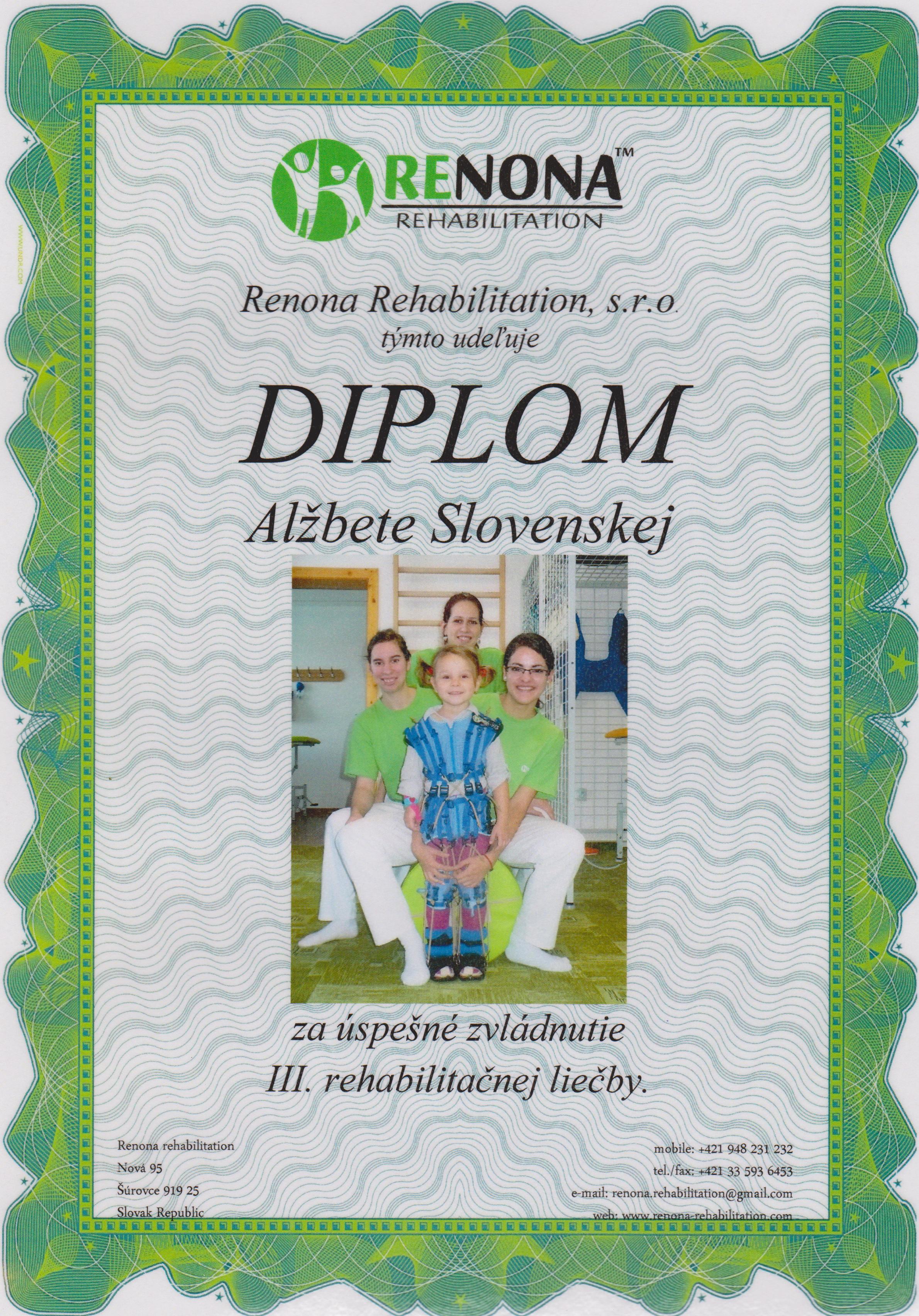 Chcela by som Vás milí darcovia osloviť v mene mojej dcérky Alžbetky, ktorá sa po vážnych komplikáciách pri pôrode, narodila z dosť ťažkým zranením. Usmievavá 4-ročná Alžbetka, ktorá to najdrahšie nedostala do vienka a musí o to z celých síl bojovať, a to už od pôrodu, keď sa takmer udusila pupočnou šnúrou a lekár ju na svet musel doslova vytrhnúť, čo samozrejme neostalo bez následkov. Naša bojovníčka bola celá modrá, keď mi ju ukázali. Následky boli zdrvujúce-popôrodná paréza brachialis horný aj dolný typ, ochrnutie pravej hornej končatiny. Časom sa začali nabaľovať aj iné diagnózy: alergia na kravské mlieko, problémy z ľavou nôžkou a teraz aj skolióza kvôli ktorej nosíme špeciálny oblek z lykry.Teraz zvádzame nekonečný boj s časom aj financiami. Čas je náš nepriateľ, vieme, že teraz keď Alžbetka rastie nemôžeme nič zameškať a toho sa najviac bojíme, že nedostane potrebné a hlavne správne liečenie v čas a neskôr to už nepôjde. Dopredu nás ženú pozitívne prognózy lekárov. Podarilo sa nám absolvovať jeden pobyt v rehabilitačnom cente Renona, kde za pomoci špeciálneho obleku a veľkej pomoci odborníkov, ktorí tam pracujú, má Alžbetka novú šancu naučiť sa správne držať telo, ako má používať svaly. Aj keď napredujeme veľmi pomaly je tu stále šanca na zlepšenie. 12 dňové liečenie stojí 2580,- eur plus 221,- eur ubytovanie, strava a cesta ďalšie financie. Veľmi by sme sa chceli do Renony vrátiť a pokračovať v liečení, potrebuje však Vašu pomoc, pomoc dobrých anjelov, ktorých Alžbetkyn príbeh chytí za srdce.