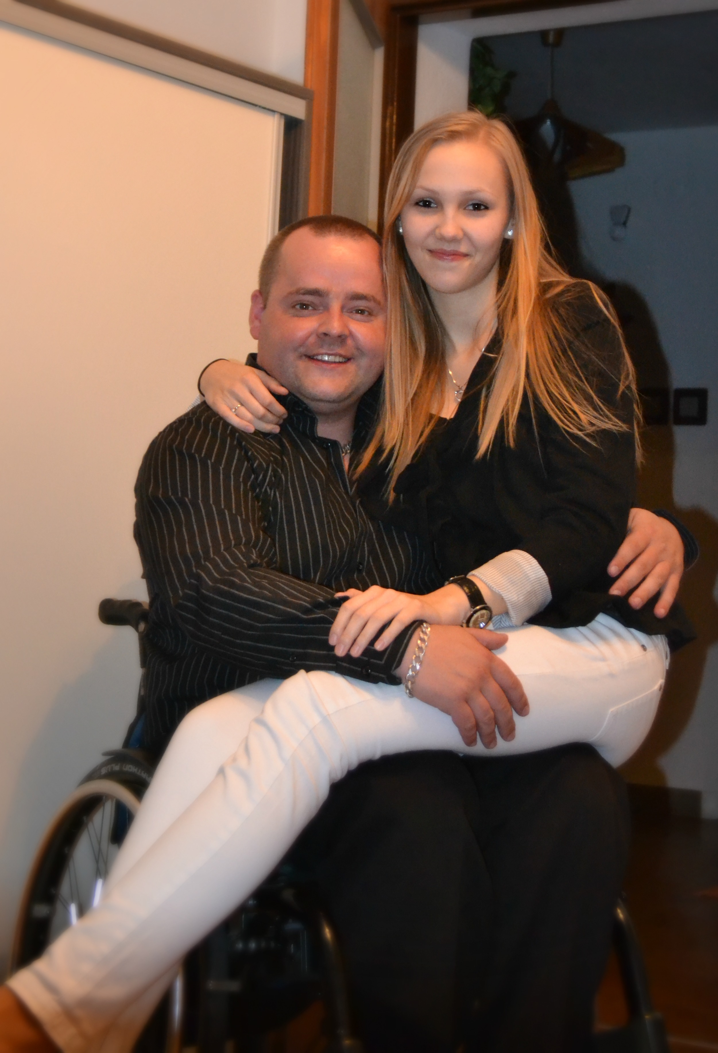 Dnes sa cítim od bedier a na vozíku lietam ako šarkan. Výborne si vytrénoval "hygienické záležitosti".Dokonca viem trošku pohnúť prstami na nohe.Tešíme sa z každého zlepšenia, pokroku.Tak ako ja, aj ona miluje tanec a doprajeme si ho aj na vozíku, ľuďom idú očká vypadnúť,chápem je to nezvyk ale žiť sa musí. Obidvaja veríme že môj stav sa ešte zlepší. Mojim najväčším snom je samozrejme to, aby som sa postavil znova na nohy.Chce to však veľa námahy, veľa cvičení, pozitívne myslenie a hlavne aj veľa peňazí.Tie podmienky aké pre takmer plnohodnotný život mám som si z veľkej časti vybojoval sám.Veľmi je dôležitá vaša chuť a odhodlanosť žiť, ako aj človek čo pri vás stojí,rodina a kamaráti. Tento rok poskytovala Nadácia SPP do Adelicentra Piešťanoch príspevok na dvojtýždenný liečebný pobyt, ktorý sa bude konať už teraz v apríli. Tento príspevok bol 1500 Eur. Bol som jeden z vybraných, ktorým bol tento príspevok poskytnutý. Veľmi ma to tešilo, pretože Adelicentrum je naozaj špičkové a pomohlo už veľa ľuďom.A však táto suma nepokrýva všetko. Nie je v nej zahrnuté ubytovanie, ani strava a na rehabilitáciu treba ešte doplatiť 730 Eur. Najdôležitejší pre mňa je vstup do hyperbarickej komory, ktorá sa takýmto ľuďom veľmi odporúča. Háčik je v tom, že jeden vstup do nej stojí 80 Eur, a odporúča sa 10 vstupov.Žiaľ, ako je to v našom zdravotníctve zvykom, nič z toho poisťovňa neprepláca. Obrátili sme sa na množstvo nadácii, no ak aj odpísali, tak len toľko že to nepodporujú..Čakali sme na vyjadrenie nadácie Orange ktorá by nám možno poskytla okolo 300 Eur no odpoveď bola, že naša žiadosť nebude podporená.Naše rodiny nie sú na tom tak dobre, že by sme si mohli dovoliť zaplatiť takú sumu. Pre nás..teda hlavne pre mňa tento pobyt veľa znamená.Vidím v ňom perspektívu a chcem byť zdravotne lepšie na tom.Preto som chcel napísať priamo verejnosti.Z celého srdca by som Vás chcel poprosiť, či by ste mi aspoň nejakou čiastkou nevedeli pomôcť.Bol by som Vám nesmierne vďačný.Je to na Vás.Vopred Vám ďakujem za čas ktorý ste venovali čítaniu mojej správy. Ďakujem Vám veľmi pekne, prajem pekný deň a všetko dobré.