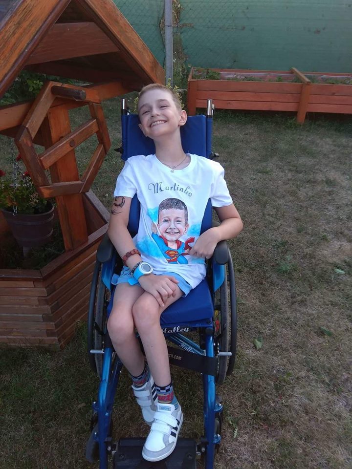 Hovorí sa, že kto zachráni jeden život,akoby zachránil svet. Som mama smrteľne chorého Martinka, držím ho v náručí a snažím sa vyhrať boj s časom, proti chorobe, ktorá sa nedá liečiť, niet na svete sily, ktorá by ju zastavila. Martinko trpí chorobou ATAXIA TELEANGIECTATICA. Choroba postihuje 1 dieťa zo 40 000, ale má 800 mutácií DNA a Martinka postihla tá najzhubnejšia forma, ktorou podľa námdostupných informácií trpia len 4 pacienti v Európe a Martinko je najmladší. Martinko má totálny imunodeficit a výška jeho AFP presahuje 10 násobnú hodnotu zdravého človeka. Choroba už postúpila a napadla jeho rečové a pohybové centrum. On nestráca nádej, nesťažuje sa a dokáže rozdávať úsmev aj z invalidného vozíka. Jeho organizmus ohrozuje viac druhov rakoviny, s ktorými jeho oslabený organizmus neskôr nedokáže bojovať, v očkách mu prasknú cievy a očné bielka sa zalejú krvou a to bude znamenať že koniec je blízko... Teraz na Mikuláša tomu boli 4 roky,čo úplne prestal chodiť, začali mu šedivieť vlásky ale on sa nevzdáva a bojuje ako najväčší hrdina. Má rád deti, ľudí, rád cestuje. Veľmi chce všetko, čo aj iné deti. No najviac chce žiť! Snažíme sa pre neho urobiť maximum,no sme robotnícka rodina a naše možnosti sú obmedzené. Veľmi chceme, aby každý deň zažil niečo pekné, aby mal dôvod usmiať sa. Martinko dlhé roky pravidelne rehabilituje, no rehabilitácie sú veľmi nákladné a nehradí ich žiadna poisťovňa a neprispieva ani štát, v ktorom žijeme. K tomu všetkému sa nám pokazilo auto bez ktorého nedokážeme život s Martinkom viesť, keďže taxíky sú na denno denné používanie moc nákladné. Cesty na rehabilitácie, logopédiu, vyšetrenia a všade, kam Martinko potrebuje ísť sú takmer každodenné. Príspevok na auto od štátu nedostaneme, so zámienkou imunodeficitu a tým, že nikam nepotrebuje chodiť, sme 10 rokov odmietavaní poisťovnami, a každým kto by mohol niečo zmeniť. Bez pomoci láskavých ľudí by to bolo nemožné. Jeho očká ešte vidia a verte, že sú totie najkrajšie očká na svete. Chce žiť naplno, vidí sa vo svojich vzoroch a keby neprehrával boj s chorobu, možno by z nehovyrástol automobilový pretekár, známy futbalista alebo hokejista...Možno! Preto Vás prosíme o trochu pozornosti, zamyslenia, prosíme o zľutovanie a vyslovujeme tak bežnú prosbu v tomto uponáhľanom svete.. „Pomôžte nám.“ Dajte šancu nášmu synovi Martinkovi,aj on si určite zaslúži trochu pozornosti, obdivu a možno potlesku, ktorým sa odmeňujú úspešní ľudia za mimoriadny výkon. Aj Martinko má srdce bojovníka,nevzdáva sa a bojuje za každý nádych, každú hodinu svojho života.